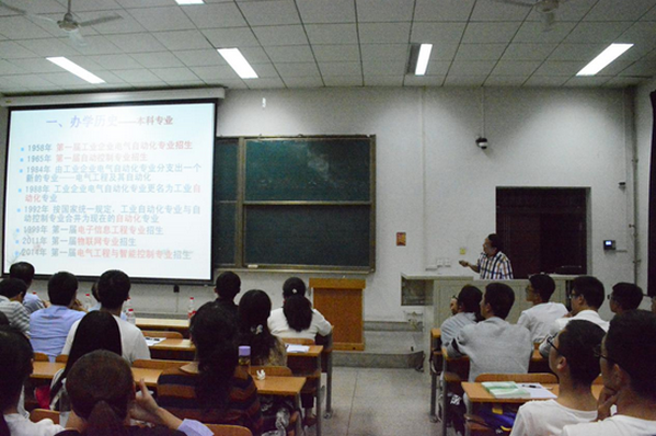 随后信控系自动化、电智和电信专业分别由刘涵教授、刘军教授和张晓晖教授进行了 专业教育,向2017级新生介绍了相应专业的研究方向、专业发展前景、学分制实施方案、专业培养计划规定的课程、教学实践环节等。