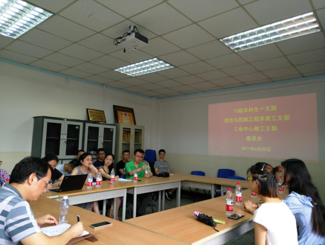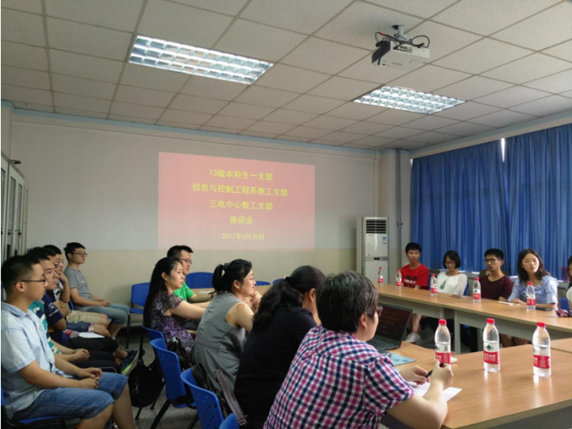 2017年6月30日,自动化公司党委信控系教工支部、三电中心教工支部与13级本科生一支部举行毕业座谈会,参会人员包括信控系教师焦尚彬、季瑞瑞、辛菁、李生民、马炫、刘庆丰,三电中心教师王馨梅、邢楠、阎晓妹,学工办杨红娟老师以及13级本科生一支部的员工党员代表。