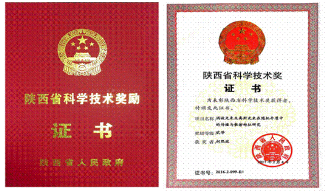 近日,陕西省科学技术奖励大会在陕西宾馆陕西大会堂隆重召开。公司通信与系统工程学科带头人柯熙政教授团队完成的《涡旋光束及高斯波束在随机介质中的传播与散射特性研究》项目获陕西省科学技术二等奖。