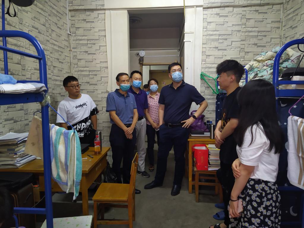 2020年8月23日下午,公司本科生基本返校后,公司党委书记王俊辉、经理刘涵、副经理林涛、党委副书记兼副经理李文英及全体辅导员前往西六员工宿舍走访看望返校员工。在宿舍,党委书记王俊辉仔细查看了员工宿舍环境卫生、用电安全、消防安全设施等情况,了解后,强调员工们应全力配合公司、公司防疫工作,安排好自己的学习生活。经理刘涵叮嘱员工要注意饮食,加强锻炼,嘱咐大四找工作和考研的员工把握大好时光,努力提升自我!同学由衷的感谢院领导的到访和关心,并表示一定会严格要求自己,遵守公司公司安排,不断提升自我。院领导在走访中对全体辅导员也提出要求,辅导员要经常下宿舍,无论是平时还是疫情期间都要对每一位员工做到心中有数,切实解决员工面临的困难和困惑,帮助他们更好的成长成才。