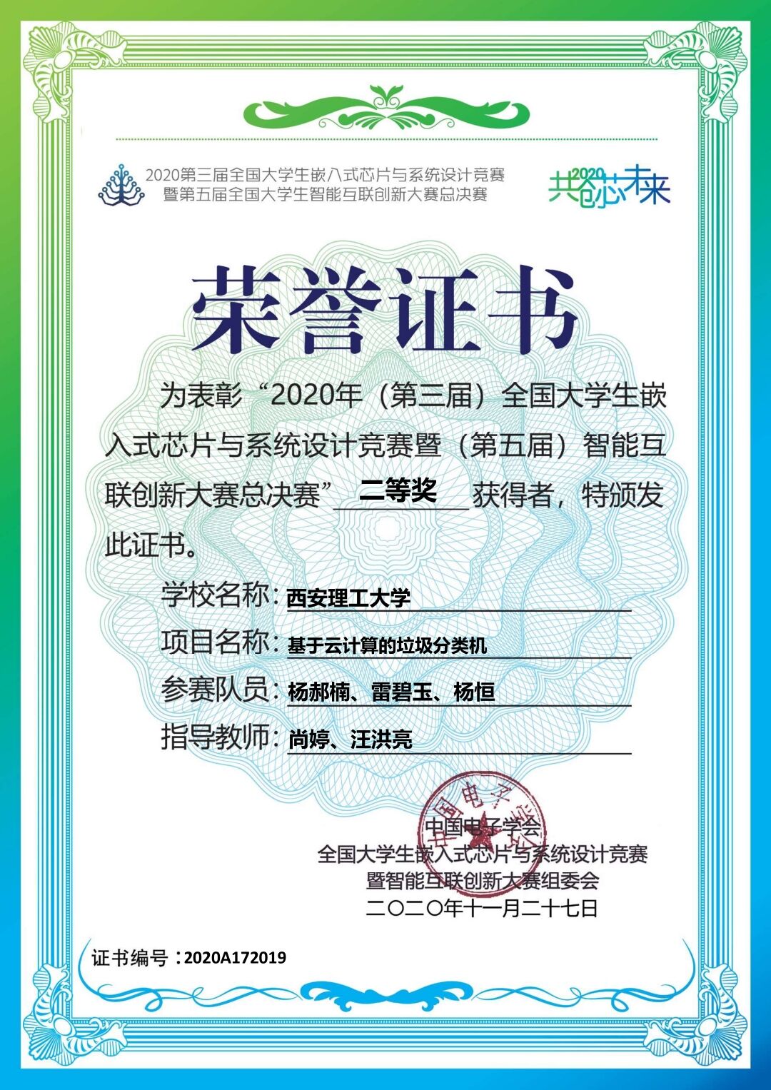11月25日至27日,全国老员工嵌入式芯片与系统设计竞赛暨全国老员工智能互联创新大赛总决赛在南京市江北新区举行,本届大赛共有来自西北工业大学、西安电子科技大学、东南大学等诸多高校的169支队伍入围总决赛。其中,公司自动化公司尚婷和汪洪亮指导的杨郝楠、杨恒、雷碧玉等3人团队作品“基于云计算的垃圾分类”荣获国家二等奖。