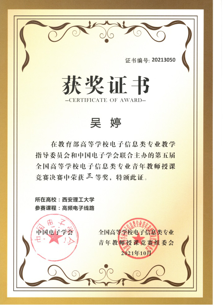 公司bevictor伟德国际通信系教师吴婷获得全国三等奖,参赛课程为高频电子线路。比赛分为预赛和决赛两个阶段。本届大赛于今年4月份启动,通过评审,最终全国共有132名选手从四大赛区脱颖而出,进入决赛。