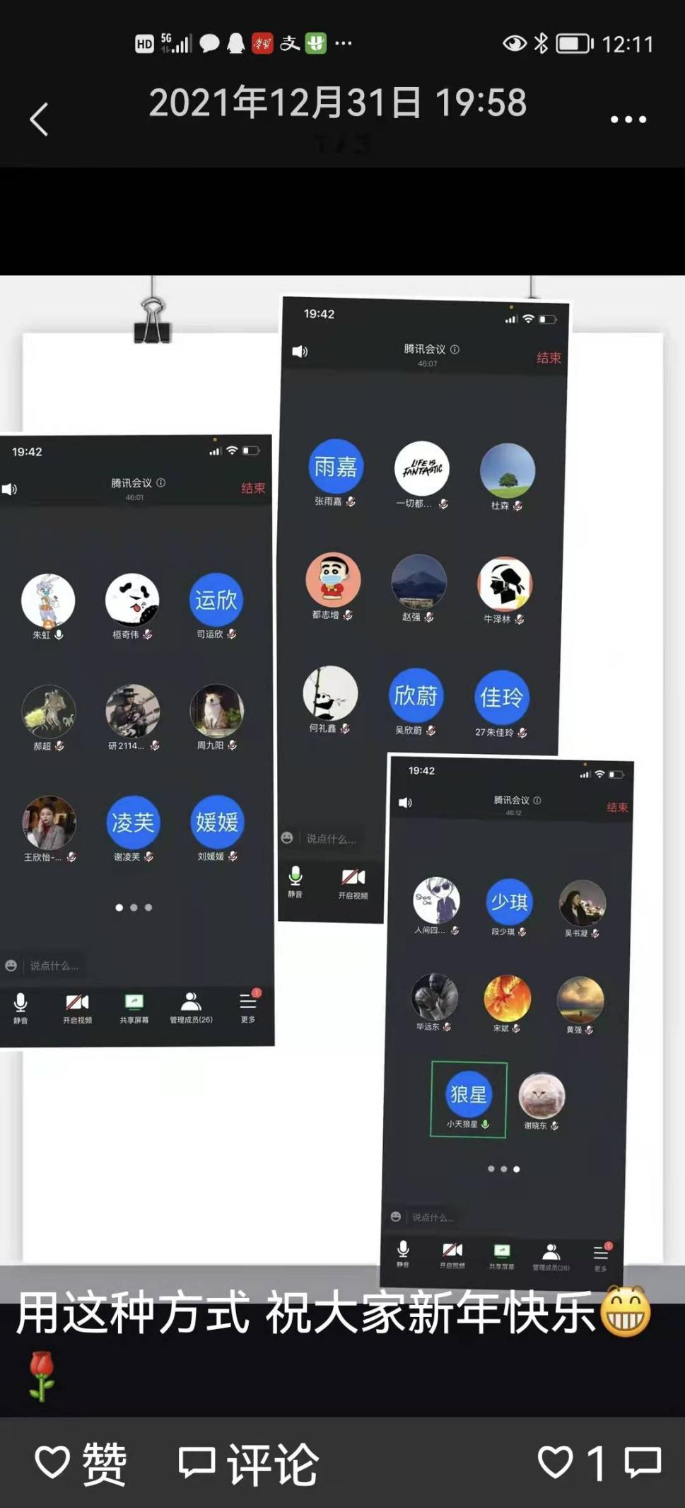 12月31日,公司组织研究生导师与员工召开跨年夜线上会议,了解员工在宿舍的学习生活情况,总结2021年畅想2022年。距离没有造成隔阂,师生在线上畅所欲言,对学习和生活中遇到的问题交流了自己的看法。师生第一次通过网络庆祝新年,在线上一起告别2021,共同迎接2022的希望。