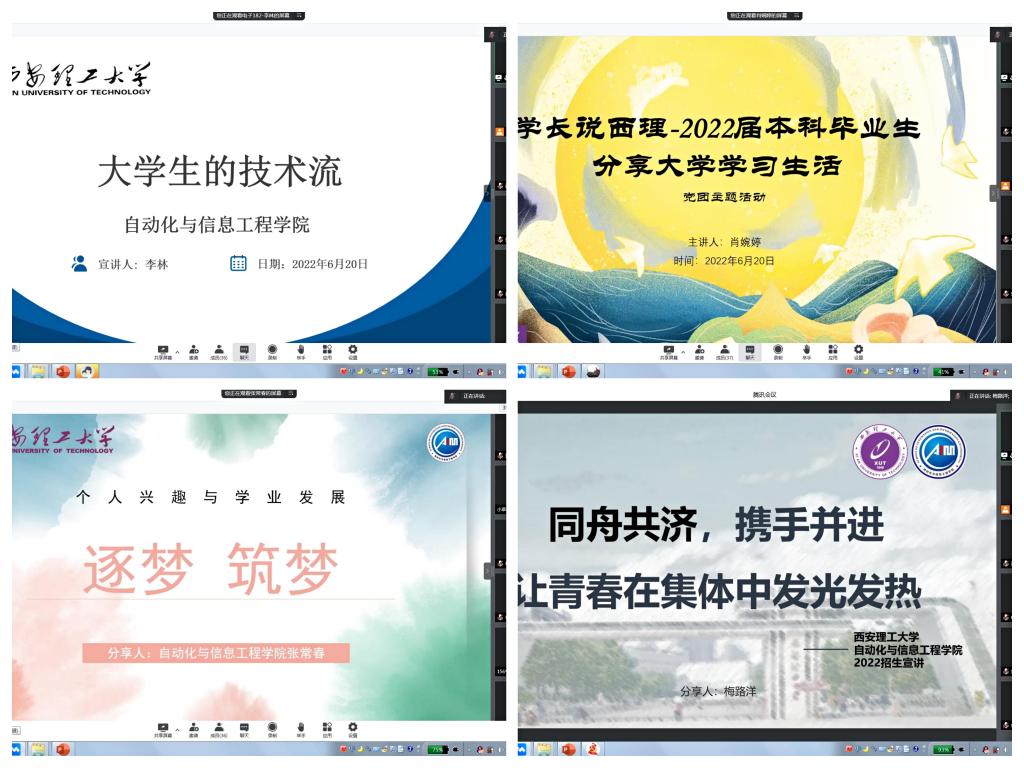 宣讲活动由公司教学副经理季瑞瑞主持,自动化公司2022届5名优秀毕业生代表担任主讲嘉宾,分别是微电182刘仙鹤、通信181 肖婉婷、电子182 李林、自183张常春和电信181梅路洋,5位嘉宾精心准备,为中学师生和家长分享了校园文化、员工社团、党团主题活动、科技竞赛、个人兴趣与学业发展、班风学风等精彩内容,宣讲活动吸引了近200人线上参加,腾讯会议室气氛欢快热烈。