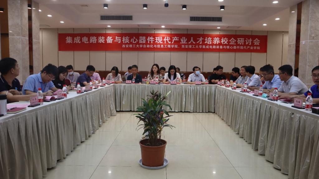 陕西省半导体行业协会副理事长何晓宁和公司教务处处长黑新宏先后致辞,自动化公司经理弋英民介绍了集成电路装备与核心器件现代产业公司的建设情况,信控、电子和通信系系主任分别介绍了专业核心课程设置情况与人才培养方案,与会企业代表就多主体协同育人、联合团队队伍、校企合作课程开发、协同化教学资源建设、产业人才定制培养、提升产学研创新平台服务能力等主题展开了热烈的研讨,并在多个方面达成共识;会议还举行了集成电路装备与核心器件现代产业公司6名新增产业导师聘任仪式。
