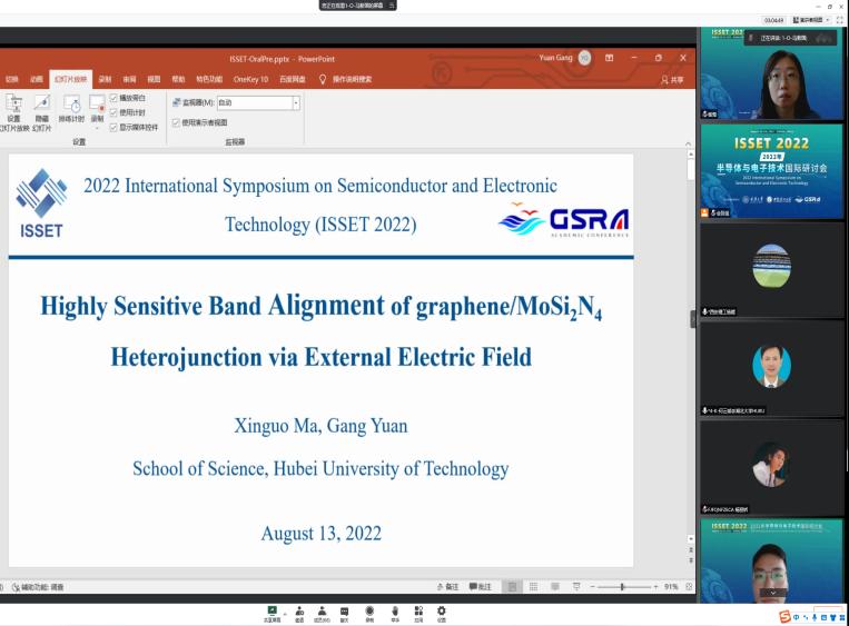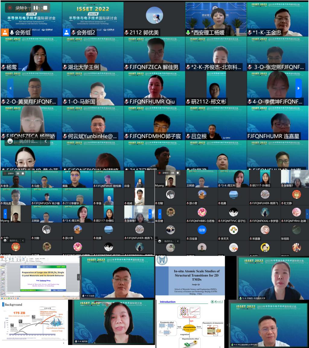 2022年8月13-14日,由伟德国际唯一官网、重庆大学、CSRA协会共同主办的“半导体与电子技术2022(ISSET2022)”学术研讨会以线上形式顺利举行。来自哈尔滨工业大学,华中科技大学、北京科技大学,湖北大学、重庆大学等兄弟院校的近100名师生参会。
