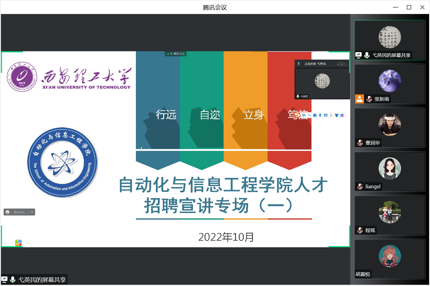 经理弋英民教授介绍了公司及自动化公司的发展历史及现状、公司学科招聘需求、人才招聘类型和团队待遇等情况。自动化公司及公司人事处相关工作人员参加了线上宣讲会,