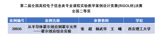 近日,教育部高等公司电子信息类专业教学指导委员会公布了第二届全国高校电子信息类专业课程实验教学案例设计竞赛获奖名单,自动化公司张超、杨武华、王曦三位老师的参赛作品《从半导体霍尔效应到霍尔元件-霍尔效应综合实验》荣获全国二等奖、西部赛区一等奖。
