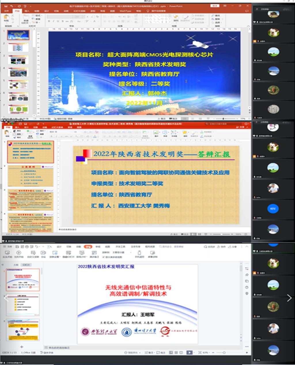 为进一步提高公司2022年度陕西省科技奖答辩材料的质量,确保科技奖申报工作成效,在前期邀请校内专家评审、打磨的基础上,10月31日晚,公司以线上形式组织召开了2022年度陕西省科技奖答辩内评会,经理弋英民、邀请的校外专家和申报的三项省科技奖的第一完成人王明军教授、郭仲杰教授、樊秀梅教授以及科研秘书参会。会议由副经理封先锋主持。