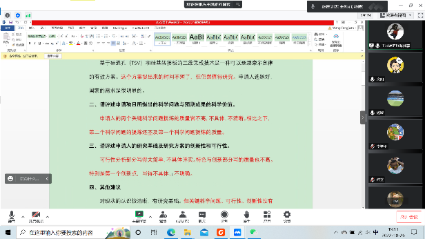 会上,各位申报老师通过PPT、思维导图及申报书等形式介绍了基金项目选题、申请书撰写进度及存在的问题,基金指导组教授们对基金题目、研究背景、科学问题、技术方案、创新点及研究基础等方面存在的不足之处逐一给出了详实的修改意见。最后,杨媛教授重申了国家自然科学基金的重要性,鼓励大家要树立信心,并嘱咐各位老师按照修改意见对申请书进行认真修改。相关老师表示,通过评审会的形式对基金申请书进行评审指导,不仅可以促进基金申请书的撰写,更能提升申请书的质量。