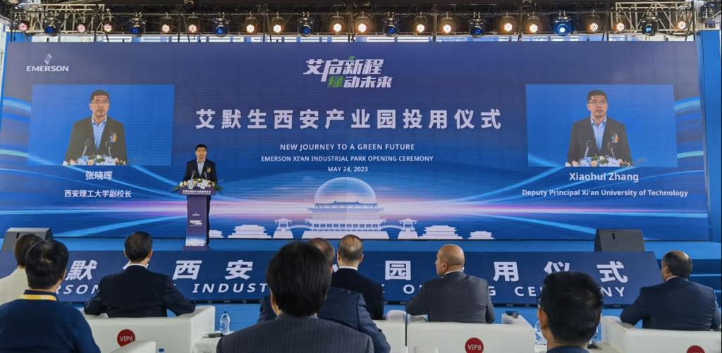 2023年5月24日下午,艾默生公司在西安高新区新园区举行了“艾默生西安产业园”投用仪式,副董事长张晓晖教授受邀出席并致辞。