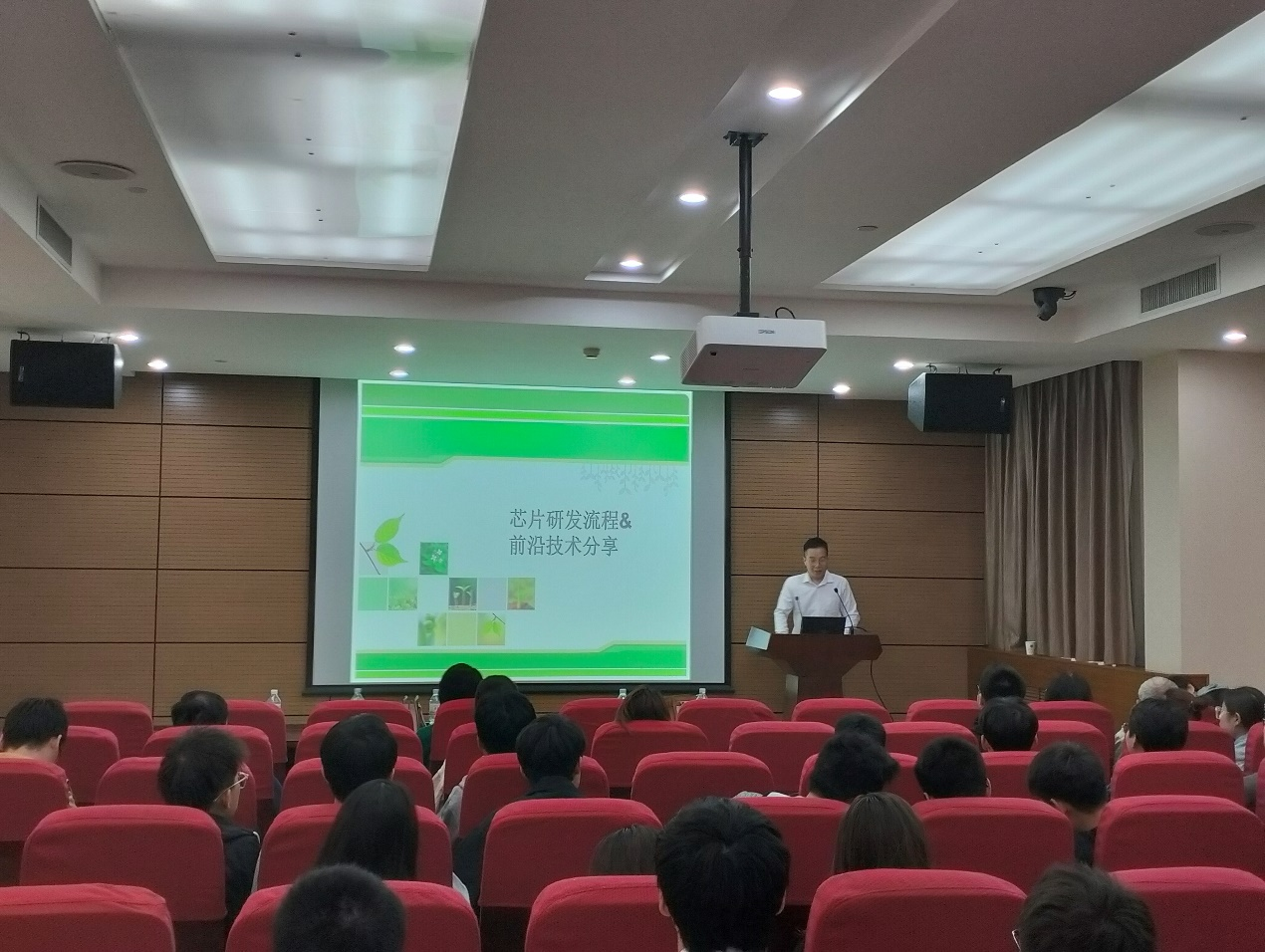 报告中,张毅聚焦芯片研发流程中的前沿技术,首先介绍了芯片架构/设计/验证等环节所涉及的基础知识,从芯片研发公司的视角对关键技术进行了解读,深入阐释了商业化前沿技术并探讨了如何应对自动化智能化的趋势,最后张毅与在场师生特别分享了个人对于芯片研发工作的思考,并鼓励在校的学弟学妹们要不断学习新知识,关注产业动态,从广度和深度上拓展自己的知识技能。