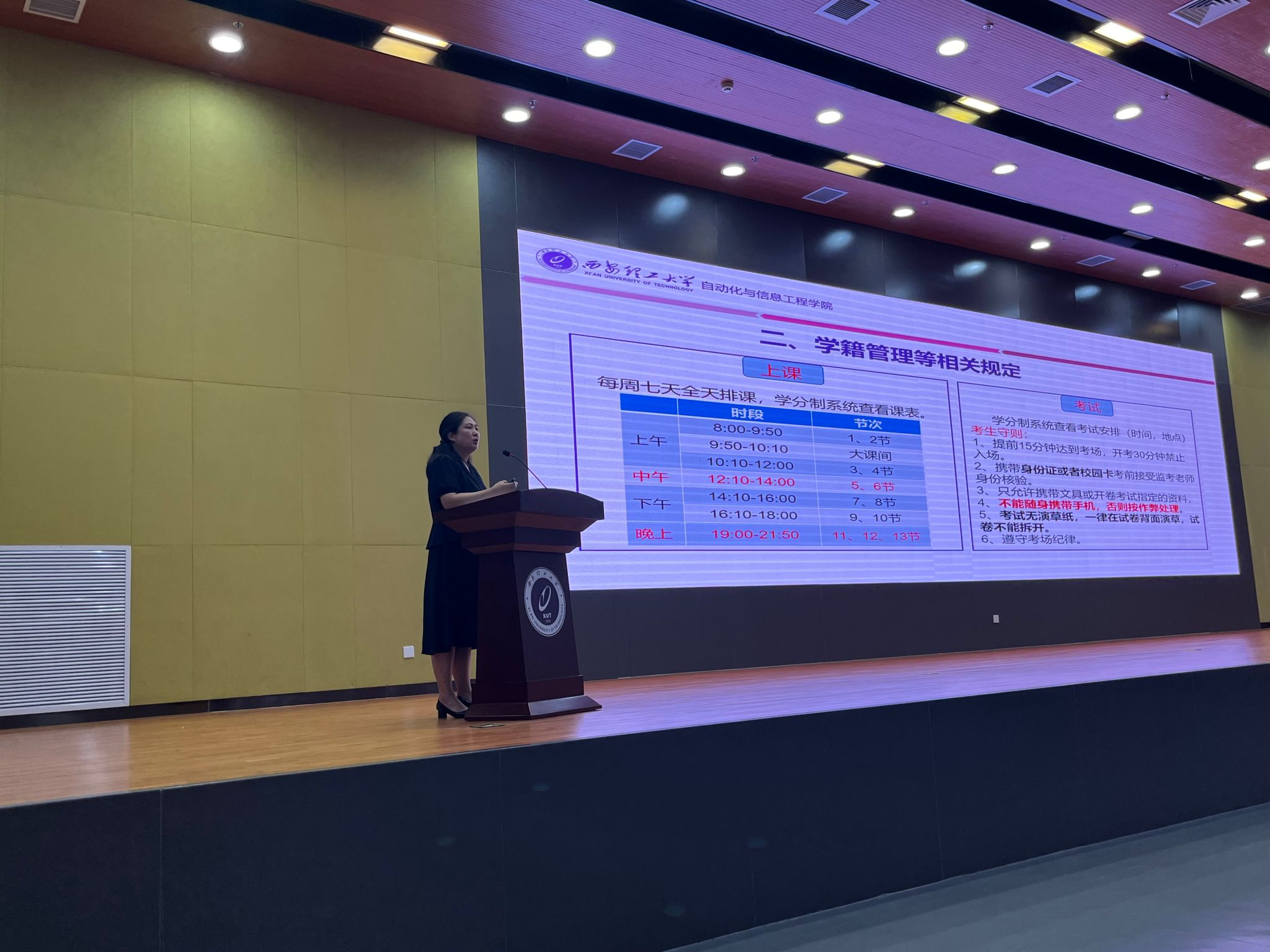 首先,季经理为新生们全面展示了公司的综合实力和独特魅力。她从公司概况、专业概况、团队概括、教学资源、科研平台、科研成果、科技创新、员工发展等多个方面进行了详细讲解,特别强调了公司在自动化、信息工程等领域的卓越成就和广泛影响力。此外,还解读了2024级新生的相关数据,包括生源分布、录取情况等,并就学籍管理规定、转专业和保研推免政策等进行了深入浅出的讲解,帮助新生们更好地规划自己的学业生涯。