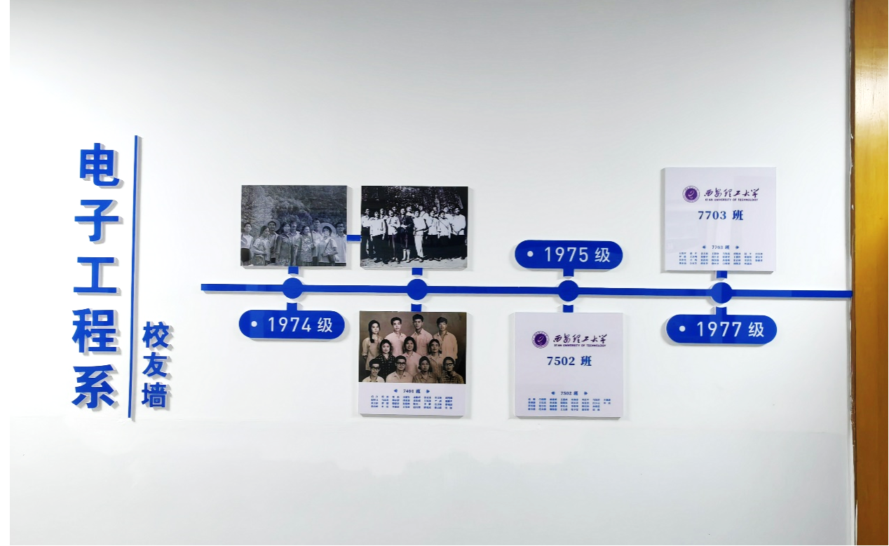 为弘扬电子工程系专业办学以来的优良传统,铭记一代代学子的青春足迹,电子工程系党支部自23年冬季启动照片墙计划。支部历经八个月的精心筹备,深入挖掘历史资料,广泛征集师生及员工手中的老照片和班级名单,力求让每一面墙壁都讲述一个完整而动人的故事。