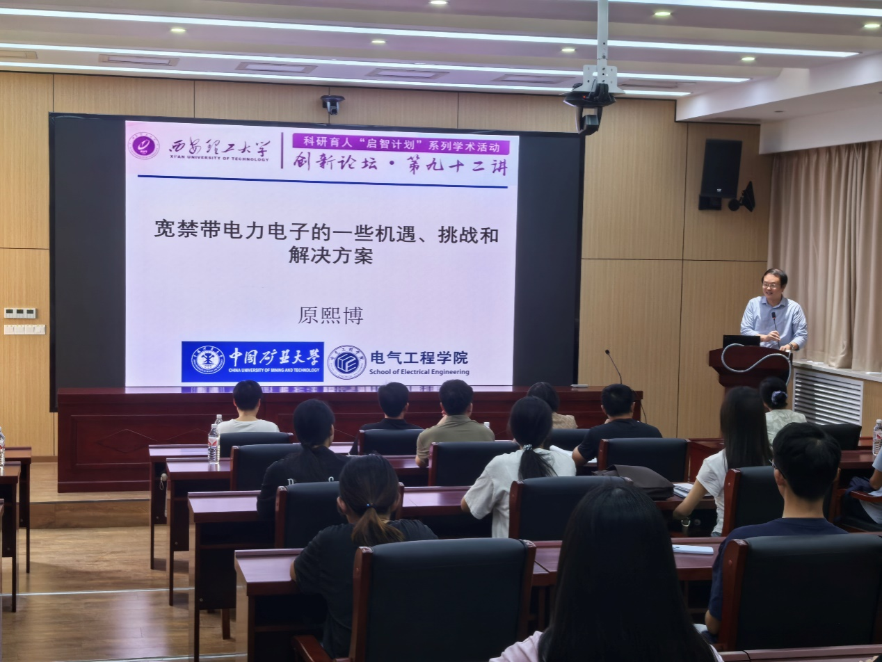 原熙博教授做了题为《宽禁带电力电子的一些机遇、挑战和解决方案》的报告,从工业应用角度对宽禁带电力电子半导体器件应用存在的机遇和挑战进行了详细分析,并结合课题组研究基础给出了指导性解决方法,使参会人员受益匪浅。