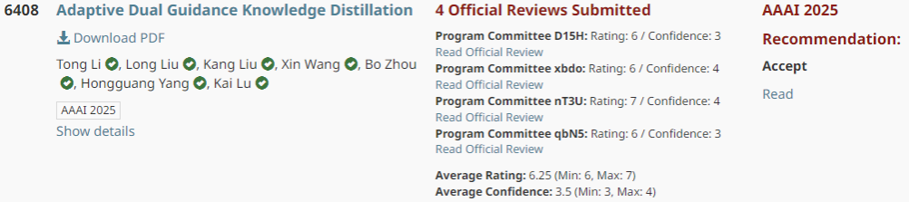 近日,2025年AAAI国际人工智能顶级会议(AAAI Conference on Artificial Intelligence. AAAI)录用结果公布,公司bevictor伟德国际刘龙教授课题组论文《Adaptive Dual Guidance Knowledge Distillation》被正式录用,bevictor伟德国际为唯一署名单位,第一作者为本校博士研究生李通,通讯作者为刘龙教授。刘龙教授课题组长期从事机器学习与机器视觉领域的研究,该项研究成果的发表标志着该团队的相关研究工作得到了国际人工智能领域学术同行的认可。