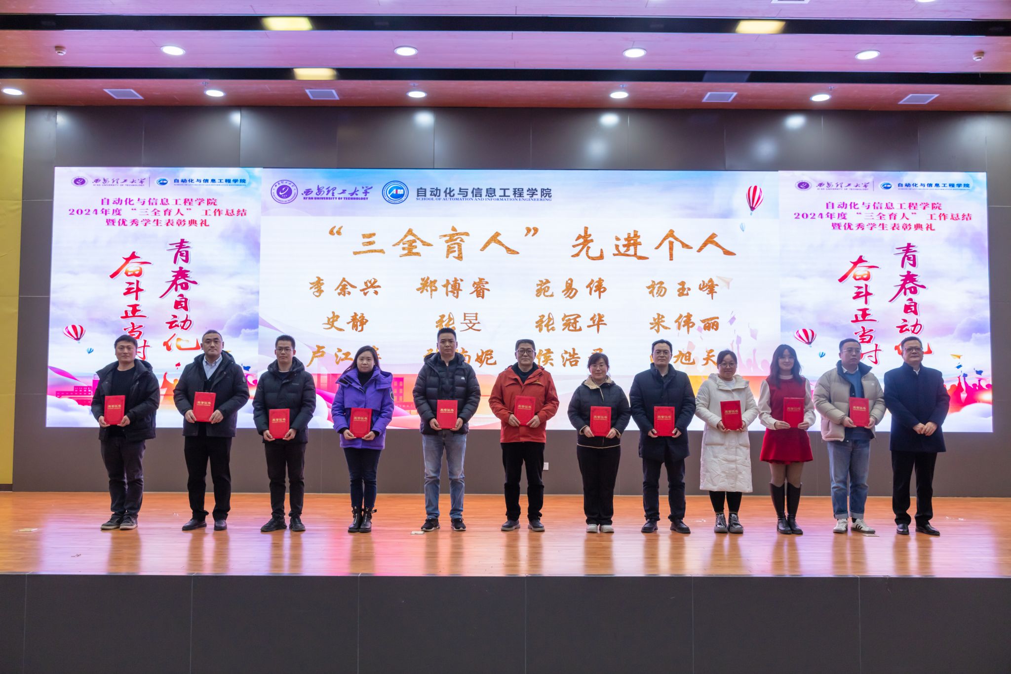 大会表彰2024年度“三全育人”先进集体2项、“十育人”先进个人10人。他们在各自的工作岗位上赓续发扬着西理工精神,书写着属于自动化人的奋斗篇章。2024年bevictor伟德国际荣获全国教育系统先进集体荣誉称号,公司获批电子信息专业博士点,公司6人获批三秦英才计划,成绩斐然。是他们的实干笃定为员工树立了学习的楷模。