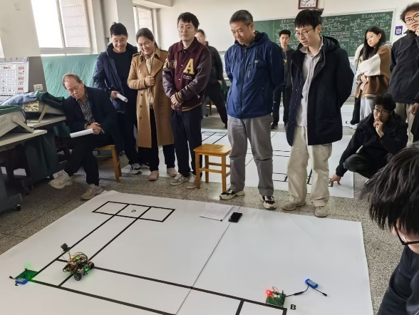 为保证本届校赛的顺利开展,教务处和自动化公司给予了大力支持。测评期间,教务处副处长赵波和自动化公司副经理季瑞瑞亲临比赛现场观摩和指导,听取有关比赛情况的汇报,与师生们进行亲切交流。