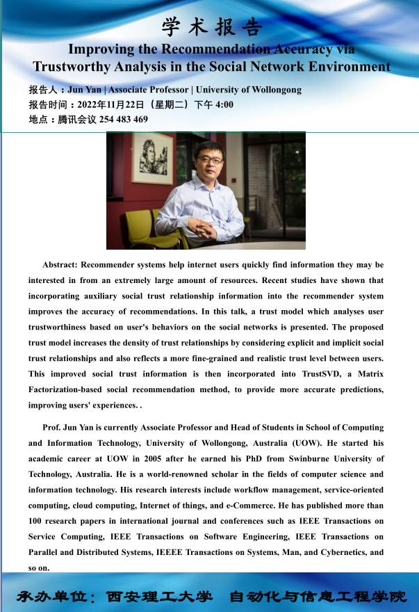 研究生学术年会系列报告-——mproving the Recommendation Accuracy via Trustworthy Analysis in the Social Network Environment